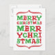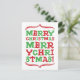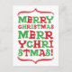 Ett modernt typografiskt vykort som endast använder God jul som typ. På traditionell röd och grönt färg.