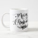 Ibland kan julprydnaden vara lite överväldigande. Ta en paus och ta en kopp av kaffe-, te- eller hett choklad med denna enkla juloffertypografi personlig mugg. Du kan välja olika bakgrunder för färg för det här mugg.