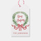 Den här julpresentdesignen har en julkrans med en "God jul" hälsning i märkrn. Du kan anpassa dig med ditt namn.