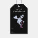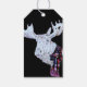 En handmålad vattenfärgsmos med en buffelbock på moderna svarta Juletiketter.