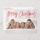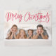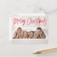 Cute helgdag-vykort med "God jul" som visas högst upp på kortet i ett rött handskript. Anpassa det visuella julvykortet med ditt vågrät foto och din familj namn. vykortet återgår till visning av returadress, ytterligare foto och anpassningsbar.
