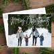 Cute helgdag-vykort med "God jul" överst på kortet i ett vitt handskript. Anpassa det visuella julvykortet med ditt vågrät foto och din familj namn. vykortet återgår till visning av returadress, ytterligare foto och anpassningsbar.