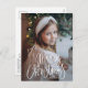 Cute helgdag vycard med "God jul", som finns grund på kortet i ett vitt handskript. Anpassa det visuella julvykortet med ditt lodrät foto och din familj namn. vykortet återgår till visning av returadressen, ytterligare foto och meddelande.