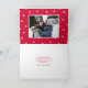 Cute helgdag-fotokort med "God jul" som finns grund i designen i ett vitt handskript. Anpassa det visuella julkortet med vågräts foto och namn i familjen på framsidan. Insidan av kortet har ett extra foto med utrymme för anpassningsbarnas meddelande med röd text. Kortets baksida visningar en röd och vit snöflinga mönster.