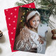 Cute helgdag-fotokort med "God jul" i grund på kortet i ett vitt handskript. Anpassa det visuella julkortet med ditt lodrät foto och din familj namn. Kortet återgår till en röd och vit snöflinga mönster.
