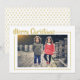 Ett festkort för att önska din familj och dina vänner God jul. Helgdag-kortet har ett favoritfamiljefoto med God jul i en modern guld-typografi. Anpassa med ditt namn. Baksidan har en roligt guld oval mönster på vit bakgrund