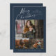 God jul White Script 3 Photo Collage med elegant handskriven typografi och 3 foton framtill. Baksidan har ett enda foto. Klicka på knappen Redigera om du vill anpassa designen.