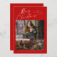 God jul White Script 3 Photo Collage med elegant handskriven typografi och 3 foton framtill. Baksidan har ett enda foto. Klicka på knappen Redigera om du vill anpassa designen.