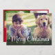 Modern Julhälsningar kort med "God jul" i ett snyggt vitt skript som täcker fotot. Lägg till ytterligare två foton på baksidan, en personlig hälsning till familj och vänner och ditt första namn.