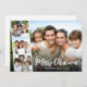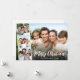 Modern platt helgdag-kort med överlagrad bild med tre mindre fyrkantiga foton, "God jul" i ett vitt skript i chicen och ditt namn och året i vanlig vit typografi.