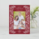 Ett lodrät julkort som visar elegantens vita vintergrön helgdag på mörkens röda bakgrund.