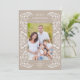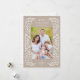 Ett lodrät julkort med en elegant vit vintergrön helgdag ram på ljusbrusbakgrund.