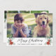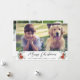 God jul-fotokort med helgdag som innehåller ditt foto, "God jul" i ett contemporary-skript, din familjs namn i enkel modern typografi och vattenfärgbuketter av poinsettiska blommor och vintergrej. Lägg till ytterligare två foton och ett anpassat meddelande på baksidan.