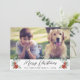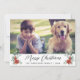 God jul-fotokort med helgdag som innehåller ditt foto, "God jul" i ett contemporary-skript, din familjs namn i enkel modern typografi och vattenfärgbuketter av poinsettiska blommor och vintergrej. Lägg till ytterligare 3 foton och ditt första namn på baksidan.