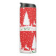 God jul Vinter-Snöflingor, röd och vit God jul, som skildrar en röd bakgrund med vita stjärnor med Julgranar och ett utmärkt Hjort på mark som täcks av Snö. Ansvarig för Holly och Ord God jul.