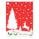 God jul Vinter-Snöflingor, röd och vit God jul, som skildrar en röd bakgrund med vita stjärnor med Julgranar och ett utmärkt Hjort på mark som täcks av Snö. Ansvarig för Holly och Ord God jul.