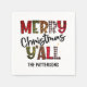 Denna moderna jultypografiska utformning har ett festivt citat "God jul Y'all" i en tartan och leopard print mönster. Personlig med ditt namn genom att redigera texten i textrutan som tillhandahålls #christmas #personlig #napkins #papernapkins #partynapkins #helgdagars #christmasparty #partyanslag
