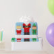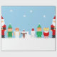En snöig pappa för helgdagplatsvisning som kläs som jultomten som ha på sig ett stort som är röd, rundaSanta kostym. Ungarna kläs som Santas lite hjälpreda, älvor och en ängel. Hunden för familjhusdjurvalpen och den snöig dyftugglan för vinter ha på sig också Santa hattar. God jul!