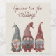 Den här fina helgdag har en rad vackra jultomter med stora näsor och långa, spetsiga hattar, som var och en håller ett festligt föremål som ett candy cane eller en present. Med ett lekfullt budskap, "Gnome for the Helgdagars!" ger den här designen stollig och värme till hälsning i säsong. De muterade rött, grönt och grått-tonerna och enkla, rundade former ge dessa gnomer är en söt appell för extra, perfekt för att sprida helgdag till vänner och familj.