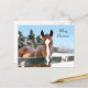 Sorrelhästen ser över ett trästaket i ett snöig landskap och önskemål dig god jul. Text kan ändras, eller borttaget med CUSTOMIZE knäppas.