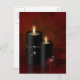 God jul-illustration med svarta ljus med dekoration av skalle från silver och en röd julbalsambaubel med svarta döskallar på en grym rödsvart bakgrund med snöflingor.