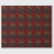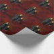 God jul-illustration med svarta ljus med dekoration av skalle från silver och en röd julbalsambaubel med svarta döskallar på en grym rödsvart bakgrund med snöflingor.