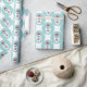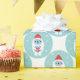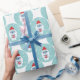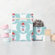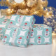Gullig jul som slår in papper som presenterar ett mönster av keliga yetis som ha på sig en santa hatt, innehav en stor röd hjärta i deras händer med ordgod jul.