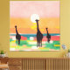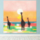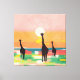Upplev lugnen av en savannahsunset som silhuetterade giraffer tar en kvällsrullning. Mjuka pastellhuvar och varma toner fångar naturens vackra skönhet.