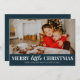 Märk lilla julblått Modern Script Photo Helgdag Card. Skicka semesterhälsningar i anpassade och personlig till vänner, kolleger och familj i enkla, chic, elegant och moderna fotodesignkort, naturliga minimalistiska stil-kort! Under kalligrafin visas anpassningsbar hälsning-meddelandet i modern typografi.