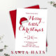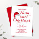 Den här designen har en mycket liten julinbjudan, en vattenfärgad jultomthatt, en söt roligt, modern minimalistisk, manustypografi, kalligrafi, ett vanligt rött och vitt, roligt tema för julfest.