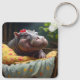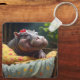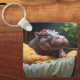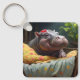 "God morgon Snuggles: Baby Hippo Wakes i Basket. Nyckelring