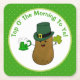 Den irländska potatisen Cute lycklig bär en grönt top hat med ett svart band och ett lås av gult. Han har tur som schamprock i ena handen och en pint grönt öl i den andra. En textmall i grönt över huvudet lyder "Top O' The God God God morgon åt dig". Utformningen ställs in inuti en vit cirkel med grönten kant. Bakgrunden är grönt med mycket litet vitt polka dots.