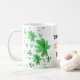 Överkast på morgonen! Kaffe Mugg, dekorerat med Irish Shamrock, tur 4 löv klöver och kärlek. Utformningen är i orangens grönt och vit och ger ett varmt välkomnande med morgonkaffet. En underbar St patrick's day.