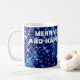 Djupblå julafton och kraftigt snöfall. Snygg snöflingor stor och liten. God jul och Gott nytt år! Låt er bästa kom i önskemål vara sann! Låt hälsan, kärlek och välståndet vara med dig! Kaffe mugg. Du kan ändra eller ta bort malltexten God jul och Gott nytt år
