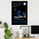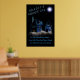 Ändra standardtexten på 3 linjer med ditt eget personliga meddelande i grund på den här poster som finns i dörrstorlek och du har har en vacker, unik gåva till dina kunder, vänner och familj som kommer att levereras år efter år. Bilden är en originalmålning av Leslie Sigal Javorek, av en klar mörk natt himlar fylld med två stjärnor och ett glödande fullt måne över ett mystiskt Tudor-hem, fönster på glimt med ljus, filtret med snö eller flytande på ett moln?
