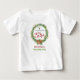 En baby-t-shirt från jul med en vattenfärgad andedräkt. Grönt gräs nål, gräs och dekorativa bär utgör denna feberkrans. Inuti andekranen finns några dekorativa prydnadsämnen och ord" kan era dagar vara Merry & Bright. Skrivs i ett rött teckensnitt för trendiget. Redigerbar text säger<Name's>Första jul.