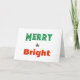 En contemporary julkort med "Merry & Bright" ord, med "Merry" i gröntens huvudstäder och "Bright" i modern röd skrift. Den djärva och minimalistiska utformningen och det roliga budskapet skapar ett öga-fångstande utseende. Det festliga hälsning inuti kortet är "Med bästa Önskemål för jul och nyår".