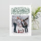 Skicka helgdag önskemål till familj och vänner med den här roligten och det festive helgdag-fotokortet. Den har handskriven "Merry and Bright" med illustrationer av prydnadsföremål, snö och jullöv. Anpassa genom att lägga till namn, meddelanden och foton. Det här fotojulkortet finns som vykort, platta kort och vikta kort.