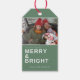 märkre av julklapp för helgdag i anpassningsbar i vår grönt "Må dina dagar vara både goda och ljusa". Anpassa med foto och namn. Du får bäst resultat om du användor ett vågrät-layoutrektangulärt foto eller skördar fotot till vågräts rektangulära form innan du överför det. Märkrn återgår till en samordnande grönt och en vit snöflingdesign. Besök vår affär och se hur vi samordnar julkorten i den här utformningen.