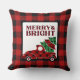 En stor röd buffalo-mage och ljusa Julgran i Lastbil Dekorativ kudde för din Helgdag-dekoration