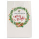 En julklapp med en vattenfärgad krans. Grönt gräs nål, gräs och dekorativa bär utgör denna feberkrans. Inuti andekranen finns några dekorativa prydnadsämnen och ord" kan era dagar vara Merry & Bright. Skrivs i ett rött teckensnitt för trendiget.
