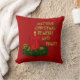 God och ljus julljus är en grafisk konstdesign. Ett rött pelarljus som tänds och droppar vax. Ljuset sitter på en ljusbricka i guld och är omgivet av en ring av skal och bär. Den dekorativa texten från guld glitter lyder: KAN DITT CHRISTMAS VARA MERRY OCH BRIGHT med en liten kullig försköning av löv. Bakgrunden är röd på båda sidor om kudden. Den här ljusdesignen är tillgänglig med rött ljus eller grönt ljus.