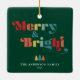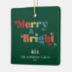 Den här fyrkantiga Julgran-dekorationen har texten "Merry & Bright" i ett dynamiskt stil. Texten från 1970-talet i stil står mot en mörk grönt bakgrund och skapar en visuellt slående kontrast. Anpassa den här helgdag med ditt namn och år. Fotografi © Storytree Studios, Stanford, CA