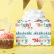 Den här julklappen i roligt som omsluter pappra innehåller texten "Merry & Bright" som visas i flerfärgad reflextext på vit bakgrund.