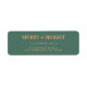 Modern snyggt Merry och Bright fet typography med guld kopparsnöflake grönt jul-chicens returadressetikett.