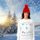 En modern och trendig jultröja med god och ljus bildtext i färglöst brev. Vare sig du är ute på en promenad i snö, eller deltar i juldagen på jobbet, njut av den här festhöjden och få bran att vara glad under hela vintersäsongen.