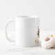 Mysigt med eleganten helgdag kaffe mugg med glödande vattenfärgstearler som är kapslade i holly löv och röda bär och vilar på ett träsegment. Med det varma budskapet "Merry & Bright," är den här designen perfekt för säsong att sippra eller kasta till alla som kärlek lugn, klassiskt julcharm.