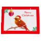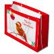 Den lilla julfågeln sång på vit och röd bakgrundspresentväska. Text kan anpassas.