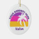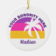 Coola matchande sortering av en tjej som ska användas som julprydnad för att anpassa och presentera under julhelgen. Har ett vackert handflatan träd framför en söt rosa- och lila-strand. Cute anpassningsbar är prydnadsföremål för alla dina vänner som kärlek kusten.