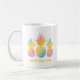 Det tropiska kaffet stil i mugg har roligten "bra vibes only" i gultens skript (texten kan vara personlig) med tre vibranta ananas för färgad av regnbåge med en vattenfärgsfärgad färggradient. Vakna och vara lycklig i somras eller någon gång på året med detta vackra kaffe mugg.